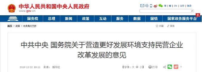 12月22日,《中共中央、國(guó)務(wù)院關(guān)于營(yíng)造更好發(fā)展環(huán)境支持民營(yíng)企業(yè)改革發(fā)展的意見(jiàn)》正式發(fā)布。這是立足于民營(yíng)企業(yè)改革發(fā)展的首個(gè)中央文件!