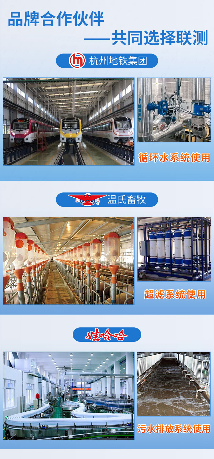 近年來,聯(lián)測儀表廣泛應(yīng)用于各大領(lǐng)域,與國內(nèi)品牌杭州地鐵集團(tuán)、溫氏畜牧、娃哈哈......達(dá)成合作,專業(yè)的技術(shù),敬業(yè)的服務(wù)贏得了諸多企業(yè)的信賴與支持。本次合作也給客戶留下了良好的印象,好評連連,溫州繞城高速公路有限公司表示,后續(xù)多個(gè)站點(diǎn)會(huì)批量使用我司電磁流量計(jì)。