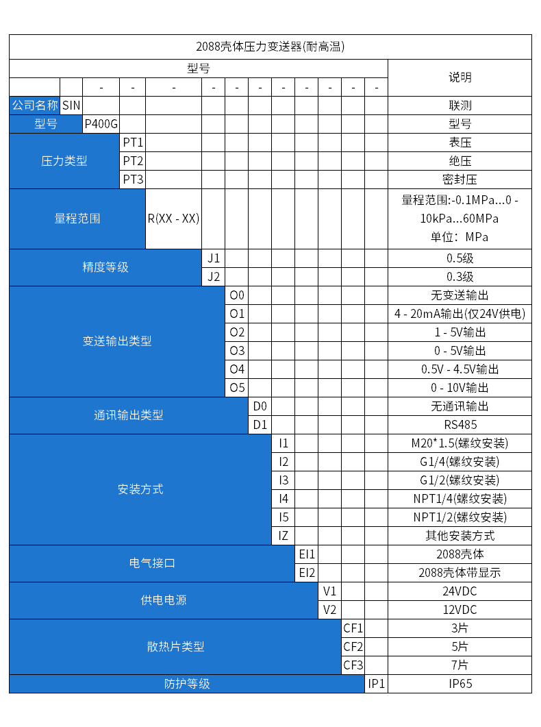 您的位置:首頁 > 數(shù)顯壓力變送器 → 聯(lián)測_SIN-P400_2088型壓力變送器_榔頭型_可帶顯示_