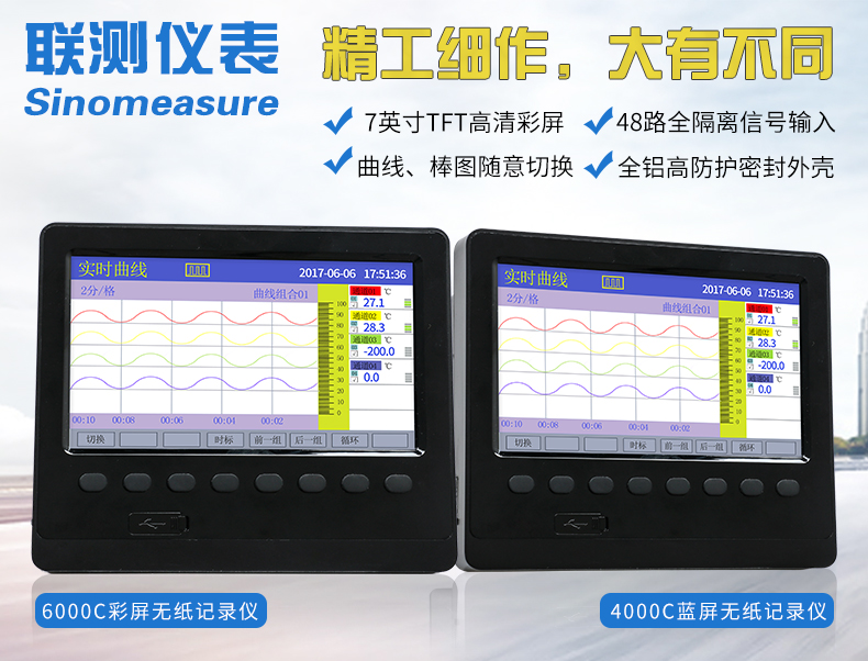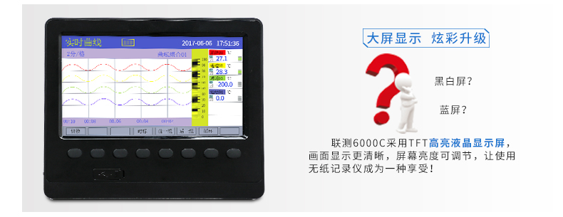 您的位置:首頁 > 無紙記錄儀 → 聯測_SIN-R6000C/4000C_1~48路可選_7英寸寬屏_彩色/藍屏_無紙記錄儀_溫度_壓力_多種參數_